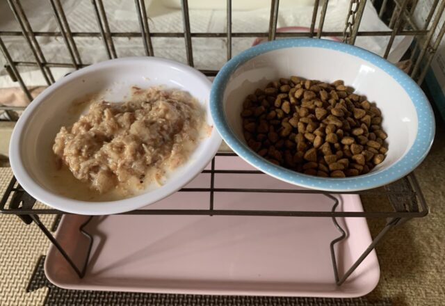 これに関しては お薬を混ぜる関係で普通のご飯をあげています