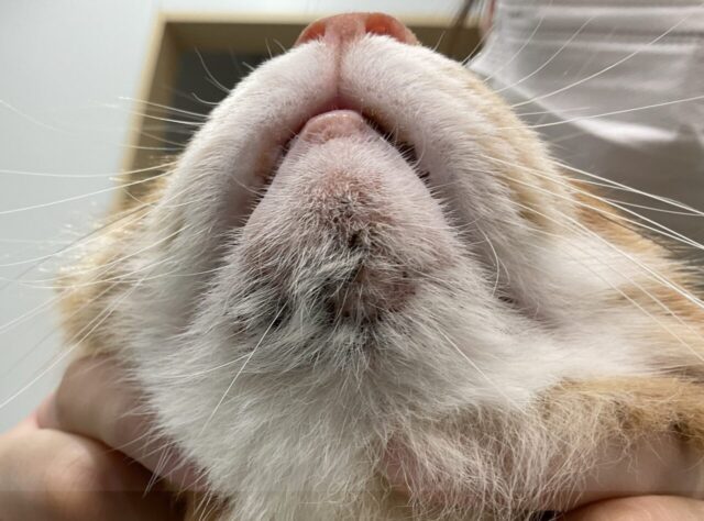 これは猫のニキビともいわれ、主に口周りや顎の下に出来る皮膚疾患です。肉眼的には黒いブツブツとしてよく見られますが、進行すると膿を形成し、周囲の皮膚に細菌感染を起こします。